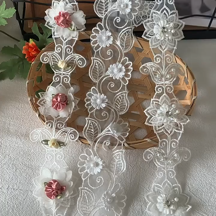 Embroidery 3D Flower Beaded Lace Trims BT0122